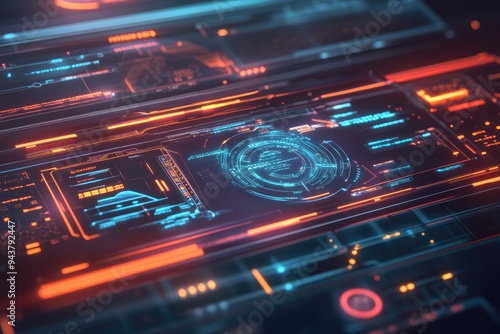 Fototapeta premium Futuristic digital dashboard with vibrant neon lights, showcasing advanced...
