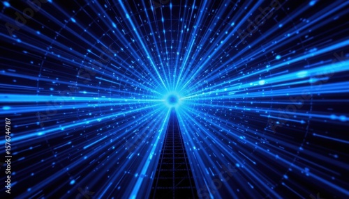 Fototapeta premium Futuristic digital data burst with bright blue light rays and glowing...