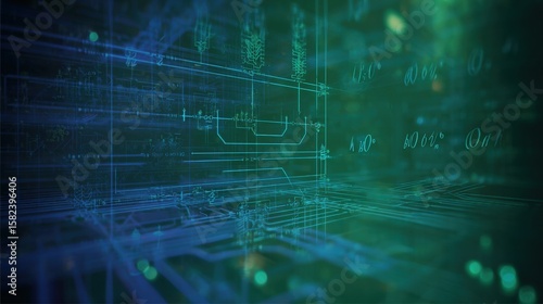 Obraz premium Futuristic Digital Data Network Visualization with Deep Tech Concepts and Abstract Line Patterns on Dark Blue Green Background