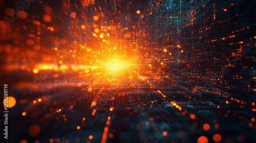 © STwul, Obraz premium Futuristic digital data stream exploding, network background, tech concept