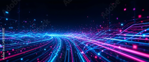 © ersan, Obraz premium Futuristic Digital Data Stream with Glowing Neon Light Trails
