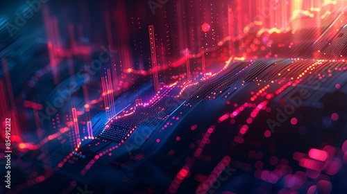 © Raul, Naklejka premium Futuristic digital data visualization with glowing neon lines and points representing financial analytics and big data.