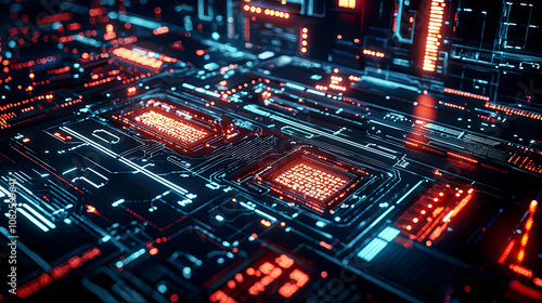 Obraz premium Futuristic digital defense grid with glowing firewalls and advanced data encryption