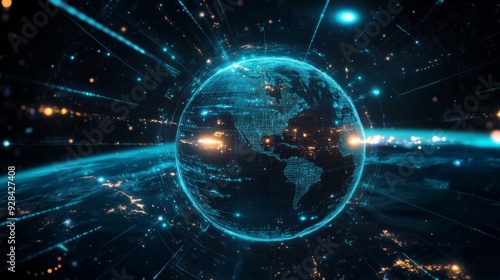 Obraz premium Futuristic digital earth globe with glowing lines.