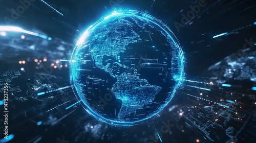 Obraz premium Futuristic digital earth visualization global 3d animation cyber environment...