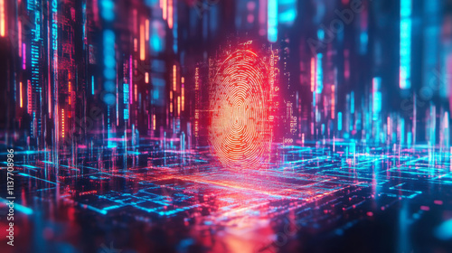 © wiparat, Fototapeta premium futuristic digital fingerprint being scanned