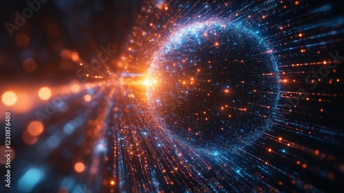 © Tatiana Vagizova, Fototapeta premium Futuristic digital globe connected with glowing lines in cyberspace. Generative AI