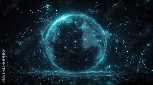 Obraz premium Futuristic digital globe made of glowing interconnected points and lines with...
