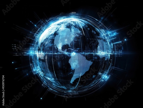 Obraz premium Futuristic Digital Globe with Blue Light Effects Representing Global...