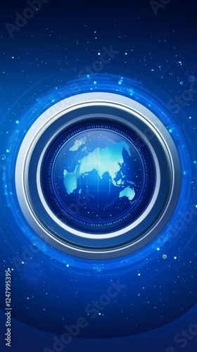 © mingnimit, Naklejka premium Futuristic digital globe with blue technology background