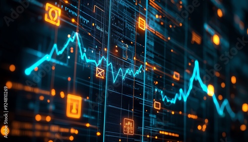 Obraz premium Futuristic digital graph with glowing elements, showcasing data trends and...