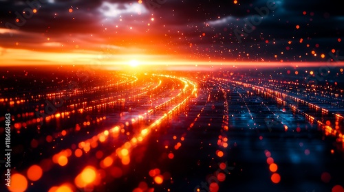 © rmdesigner81, Obraz premium Futuristic Digital Grid Horizon with Abstract Geometric Patterns
