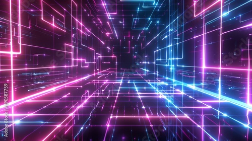 © Pat J., Fototapeta premium Futuristic digital grid in neon colors