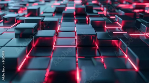 Obraz premium Futuristic Digital Grid with Glowing Red Lines, Technology Background