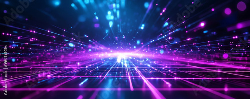 Fototapeta premium Futuristic digital grid with neon glow creates vibrant atmosphere of energy and motion.