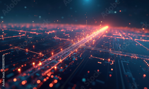 © Narong, Obraz premium Futuristic Digital Highway, Network Data Stream - Futuristic Techno.