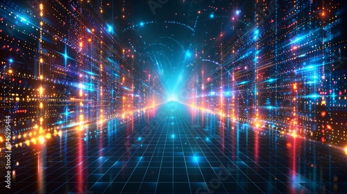 Fototapeta premium Futuristic digital highway with glowing lines and data streams.