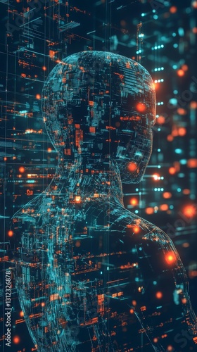 Fototapeta premium Futuristic Digital Human Silhouette with Glowing Data Elements