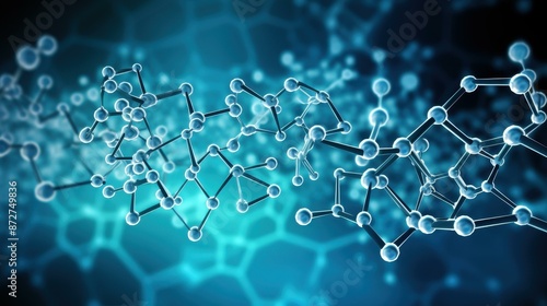 Fototapeta premium Futuristic digital illustration of molecular structures with hexagonal patterns.