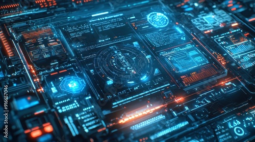 Fototapeta premium Futuristic Digital Interface, a complex digital display featuring holographic...