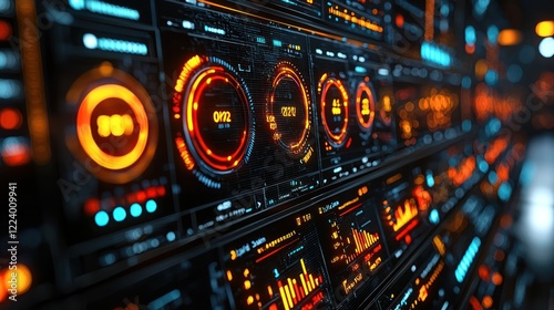 © wikkie, Obraz premium Futuristic Digital Interface: A Glowing Array of Data and Information