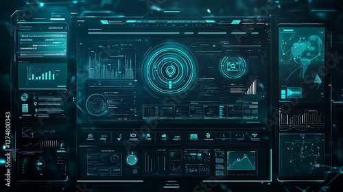 Fototapeta premium Futuristic Digital Interface: A High-Tech Dashboard Displaying Data Analysis...