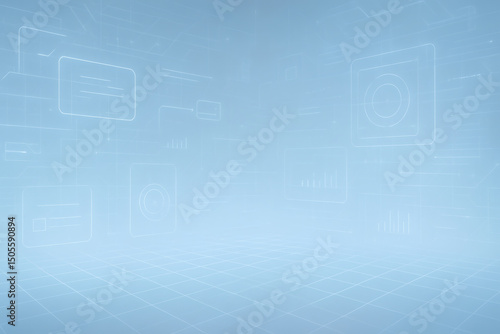 Fototapeta premium Futuristic Digital Interface Background with Glowing Grid and Holographic Elements 1