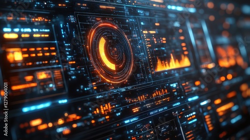 Obraz premium Futuristic digital interface displaying data analytics and graphical elements...