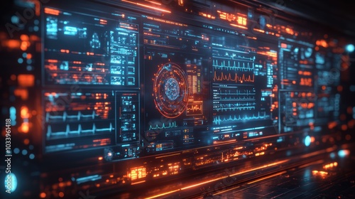Fototapeta premium Futuristic digital interface displaying data and analytics.
