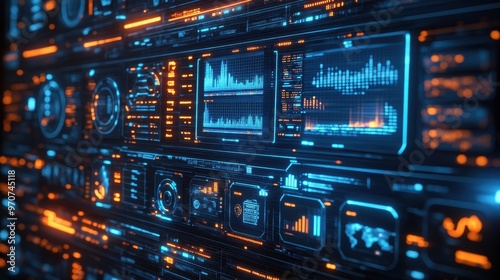 Fototapeta premium Futuristic digital interface displaying data and graphs, perfect for...