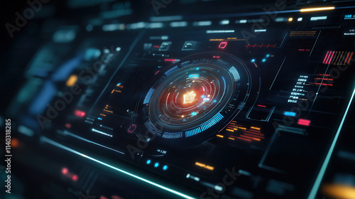 Fototapeta premium futuristic digital interface displaying healthcare research data with glowing elements and advanced analytics, emphasizing innovation and