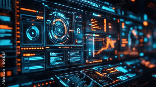 © Almahyra, Obraz premium Futuristic digital interface displays