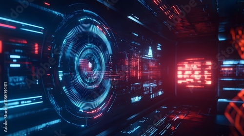 © irawan, Obraz premium Futuristic Digital Interface Displays Complex Data Streams