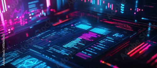 Obraz premium Futuristic digital interface displays glowing data streams and charts.