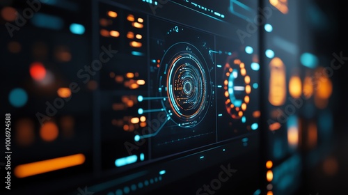 Obraz premium Futuristic digital interface featuring glowing graphs, charts, and data...