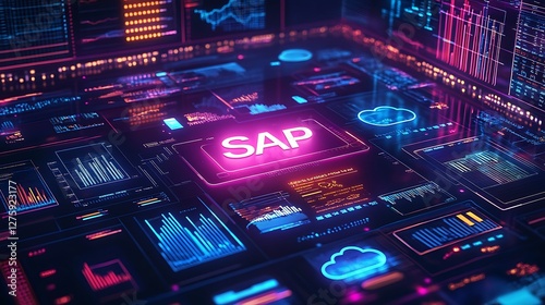 Fototapeta premium Futuristic digital interface featuring glowing text, suitable for technology...