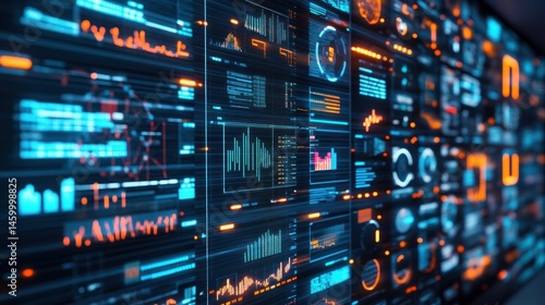 Fototapeta premium Futuristic digital interface glowing data streams and charts