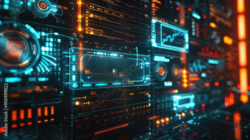 Fototapeta premium Futuristic Digital Interface incorporating Data Visualization and Technological Elements