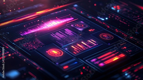 Obraz premium Futuristic Digital Interface: Neon Lights and Data Streams