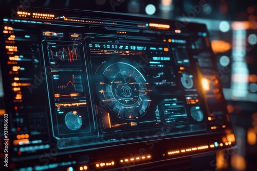 © PixeloAI, Obraz premium Futuristic Digital Interface on Screen