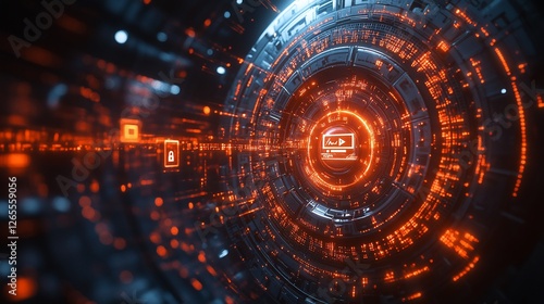 Fototapeta premium Futuristic digital interface showcasing glowing data streams and security...