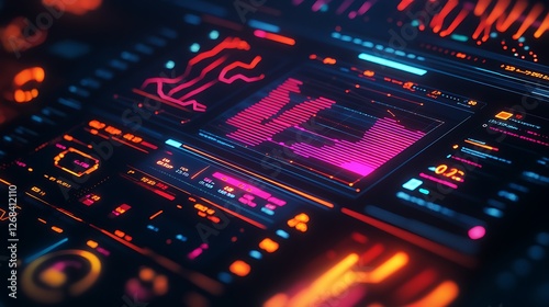 © MASJAB, Obraz premium Futuristic Digital Interface Showing Data Graphs And Charts
