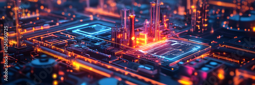 © Syukra, Naklejka premium futuristic digital interface showing production statistics
