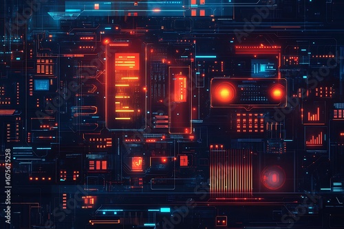 © Tayba, Obraz premium Futuristic Digital Interface Technology Abstract Background with Neon Lights