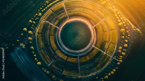 © MakeitEasy, Obraz premium Futuristic digital interface, vibrant glowing circular patterns with data elements, tech innovation for presentations and designs.