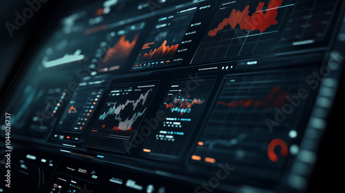 © urbanpalette, Obraz premium Futuristic Digital Interface Visualizing Modern Data Screen Global Indicators, Data Streams, and Complex Forecasting Models