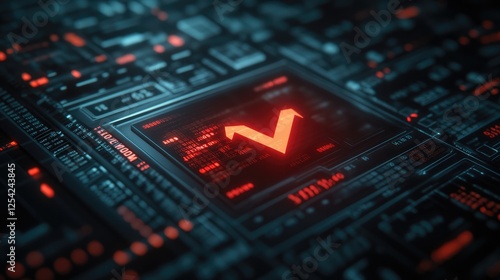 © Stockfish, Fototapeta premium Futuristic digital interface with a glowing symbol and circuit patterns.