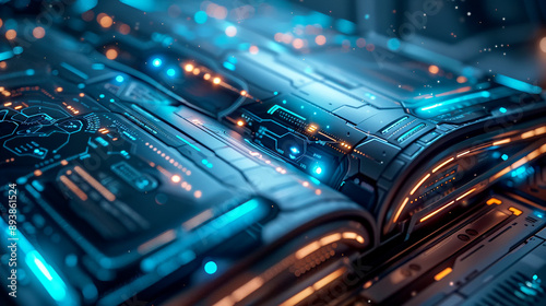 Obraz premium Futuristic digital interface with blue and orange lights
