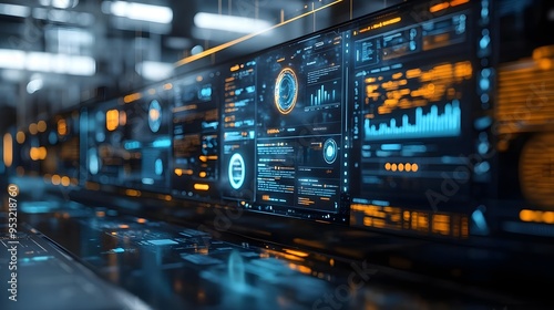 © Phichaphat, Naklejka premium Futuristic Digital Interface with Blue and Orange Lights