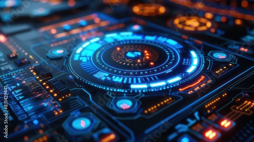Obraz premium Futuristic digital interface with blue and orange lights, representing...